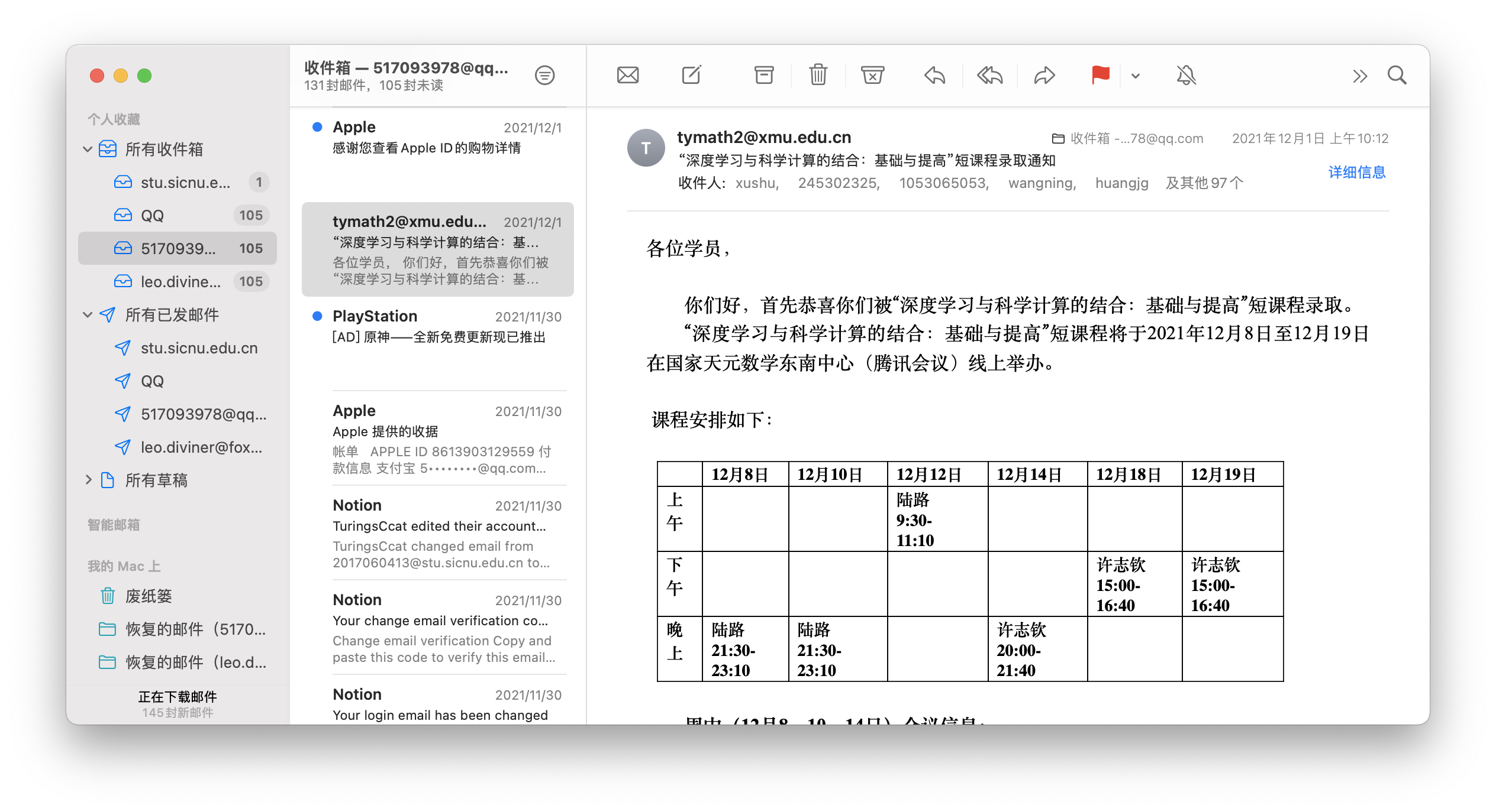 2021年12月8日-12月19日,国家天元数学东南中心通过腾讯会议线上举办“深度学习与科学计算的结合:基础与提高”短课程。本次短课程开设1门课程,课程共12学时,招收校内外学员757名。